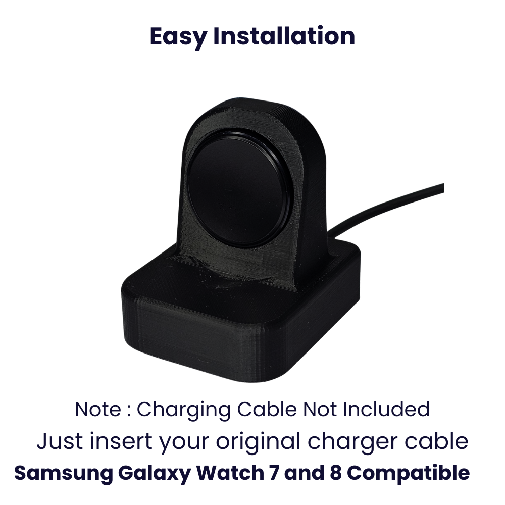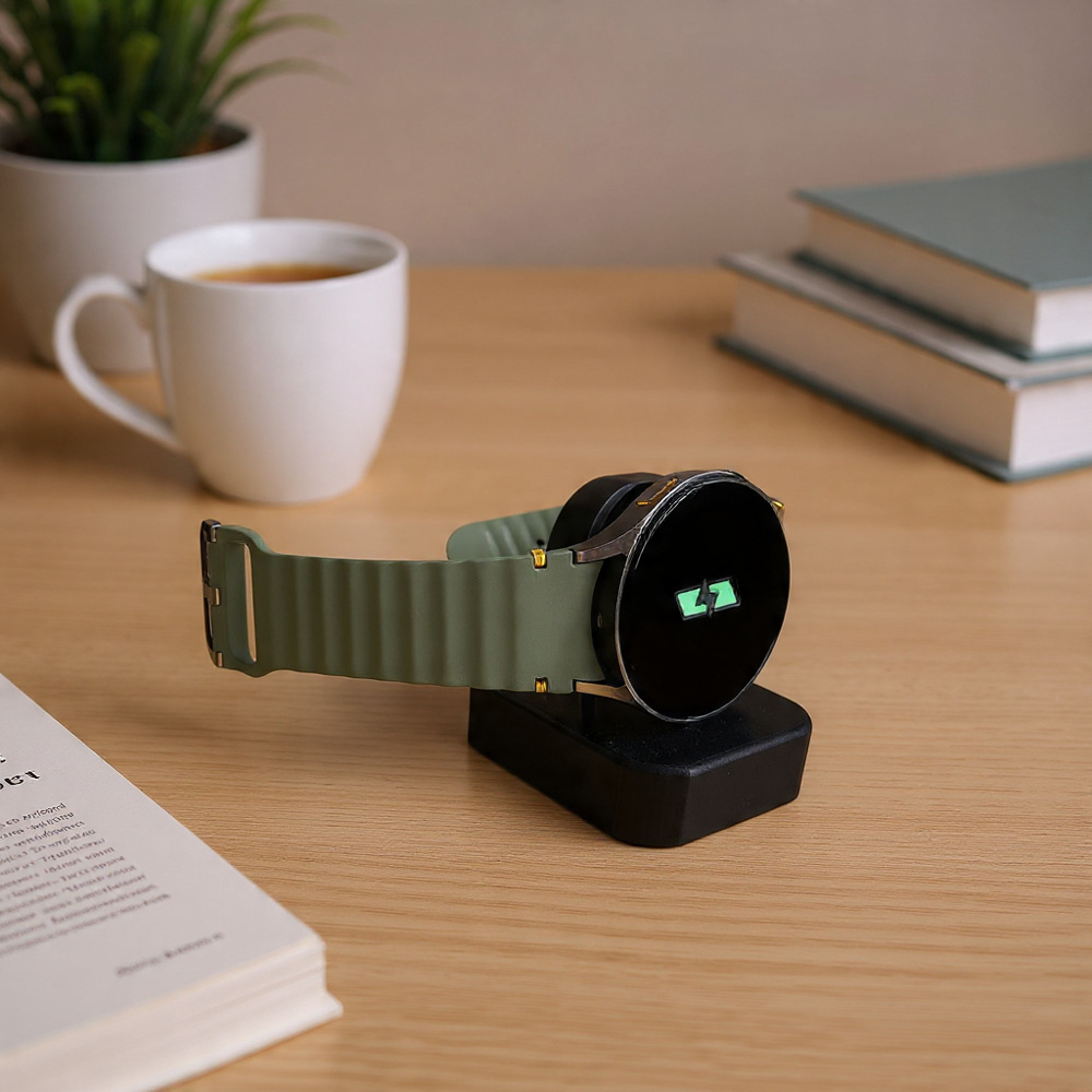 This watch charger stand holder is a compact and practical charging accessory compatible with Samsung Galaxy Watch 8, 7, 6, and 5. It is designed to securely hold your smartwatch in place while charging, helping you maintain a clean and clutter-free desk or bedside setup.