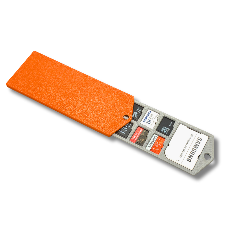 - Compact SD card holder keychain for daily carry