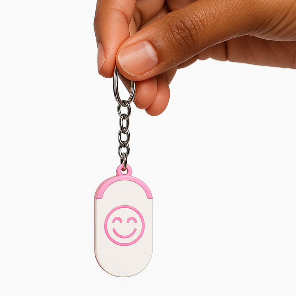 This small box keychain is suitable for men and women who prefer functional yet cute accessories. It is a non-electronic storage accessory intended for organizing small items conveniently.